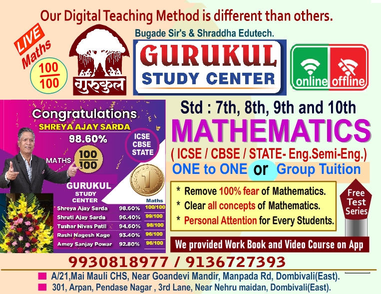 "The dedication and expertise at Gurukul Study Center transformed my understanding of mathematics. Prof. Bugade's teaching method made even the most complex topics feel simple and intuitive."